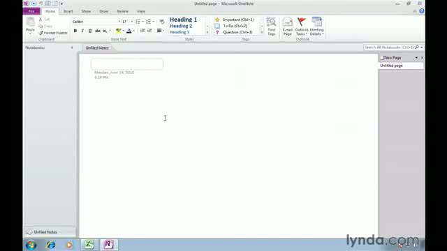 Creating A Note On A Page Using OneNote 2010